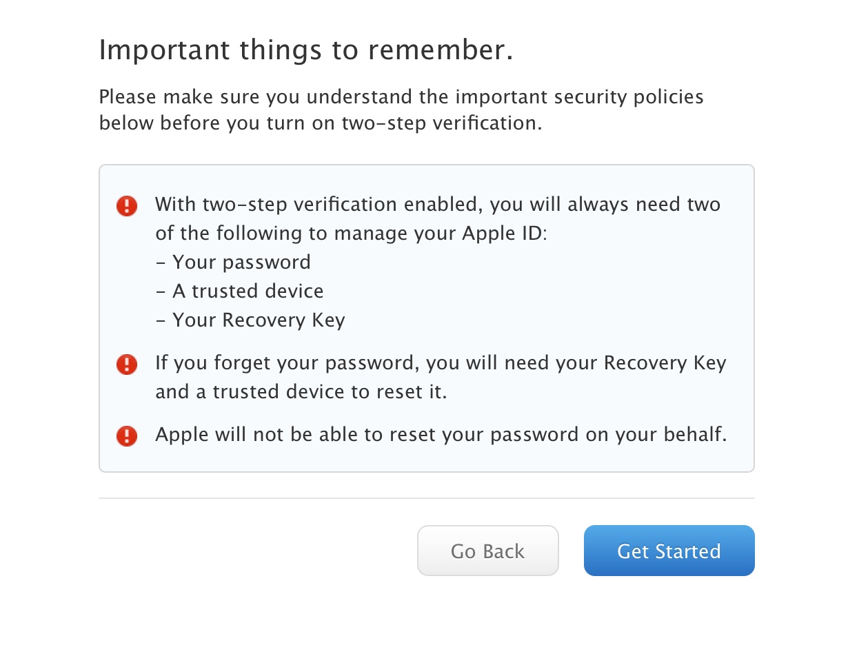 4. DropBox will display some information about their two-step verification process. Click “Get Started” to continue.