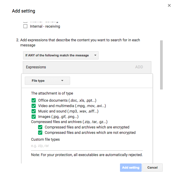 Better support for inbound attachment filtering
