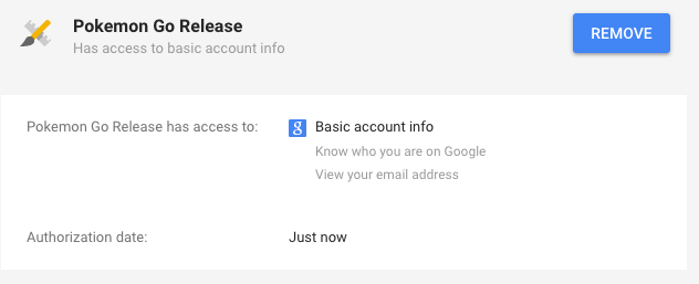 We recently discovered that the Pokémon GO account creation process on iOS erroneously requests full access permission for the user’s Google account. However, Pokémon GO only accesses basic Google profile information (specifically, your User ID and email address) and no other Google account information is or has been accessed or collected. Once we became aware of this error, we began working on a client-side fix to request permission for only basic Google profile information, in line with the data that we actually access. Google has verified that no other information has been received or accessed by Pokémon GO or Niantic. Google will soon reduce Pokémon GO’s permission to only the basic profile data that Pokémon GO needs, and users do not need to take any actions themselves.