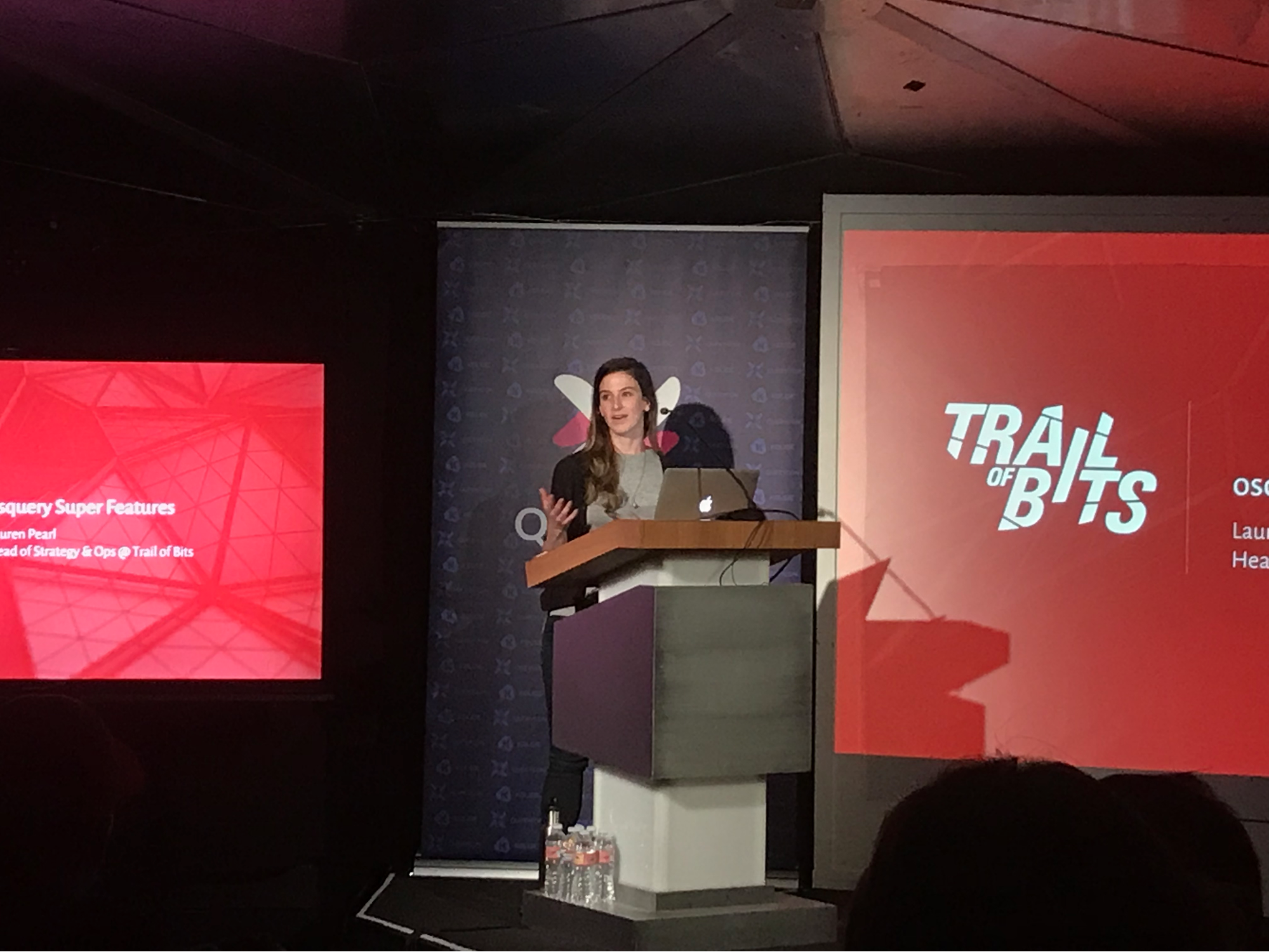 The talks ranged from the big-picture (operational security preparedness by Rob Fry of JASK) to the highly technical (breakdowns of macOS internals by Michael Lynn of Facebook), with consistent levity, epitomized by the brilliantly sulky Ben Hughes of Stripe. Scott Lundgren of Carbon Black gave a report-card-style review of the community from an outsider’s perspective. Longtime osquery evangelist Chris Long of Palantir provided a candid user experience of working with osquery’s audit framework in his organization. It was a well-curated mix of subjects, speakers, and perspectives. They all taught us something new.