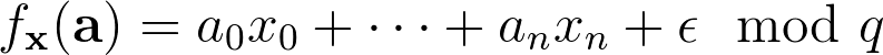 Now, suppose we introduce a small amount of noise to our function, so that after multiplying x and a, we add an error term e and reduce the whole thing modulo a (medium-sized) prime q. Then our noisy mystery function looks like