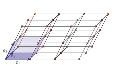 The reason cryptography based on LWE gets called lattice-based cryptography is because the proof that LWE is hard relies on the fact that finding the shortest vector in something called a lattice is known to be NP-Hard. We won’t go into the mathematics of lattices in much depth here, but one can think of lattices as a tiling of n-dimensional space