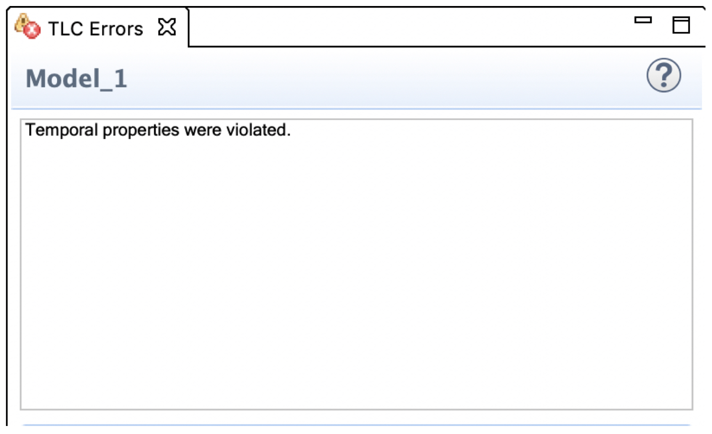 When finality cannot be reached, the model checker will detect that a temporal property has been violated, as shown in Figure 4.