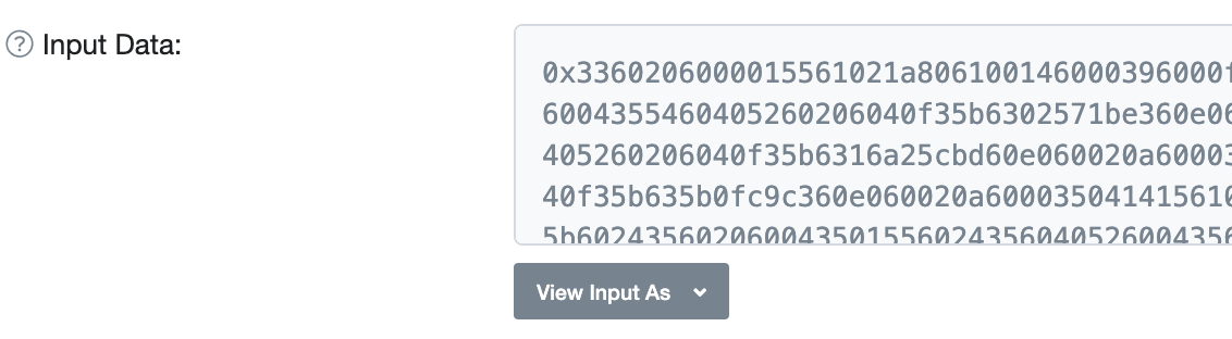 Luckily, Manticore does not rely on any high-level language and can inspect code at the EVM level. So we backpedaled a bit and found the creation transaction that gave birth to the ENS contract. After some clever use of etherscan.io magic, we found the transaction and extracted the initialization bytecode: