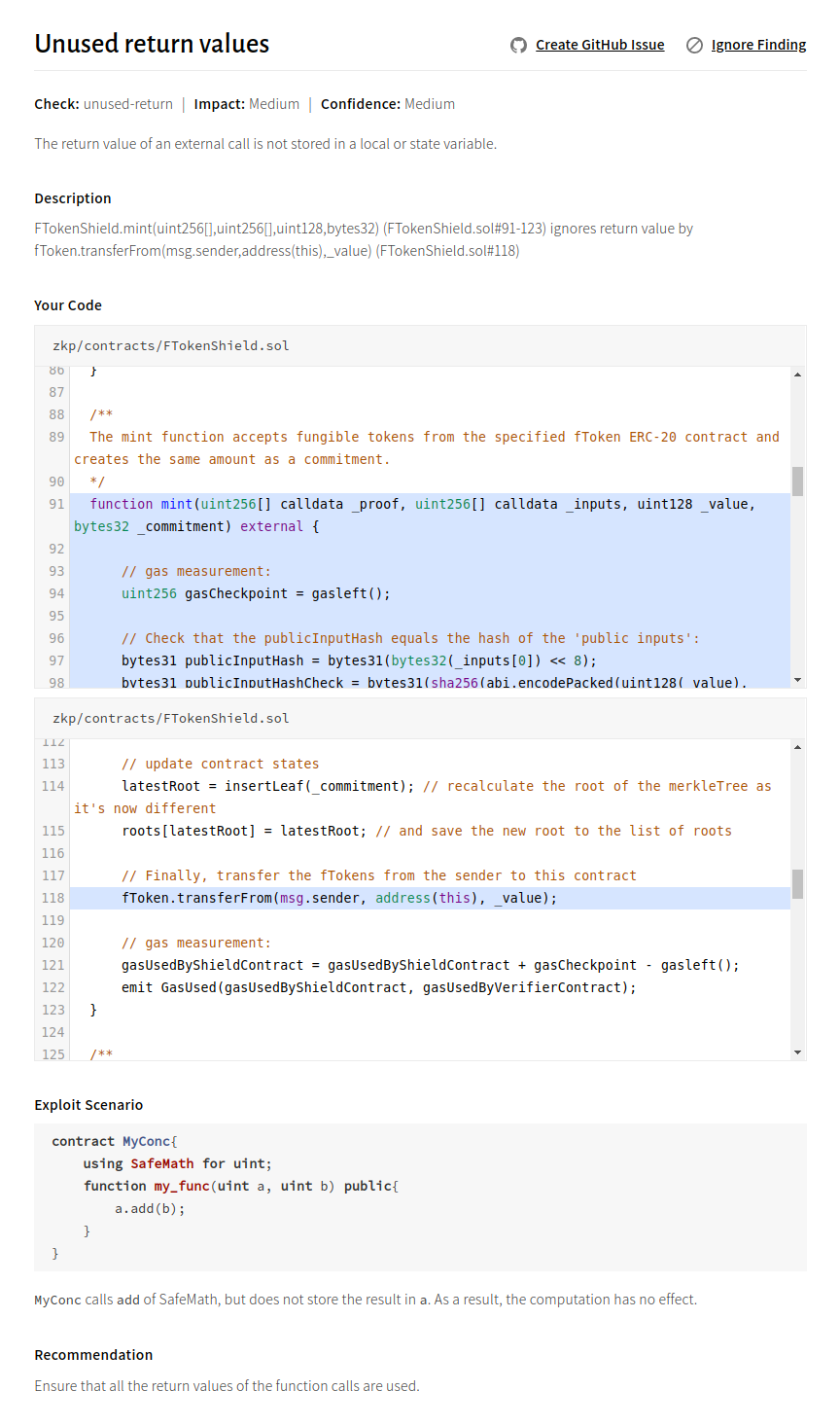 - Unused return value can allow free token minting