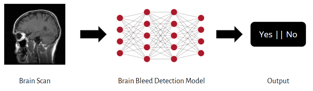 Now, suppose the deep learning model in this image predicts whether or not a patient has a brain bleed and responds with a terse “Yes” or “No” answer. This setting provides users with as little access to the model as possible, so you might think there’s not much an adversary could learn. However, even when strongly restricted, an adversary modeled by PrivacyRaven can: