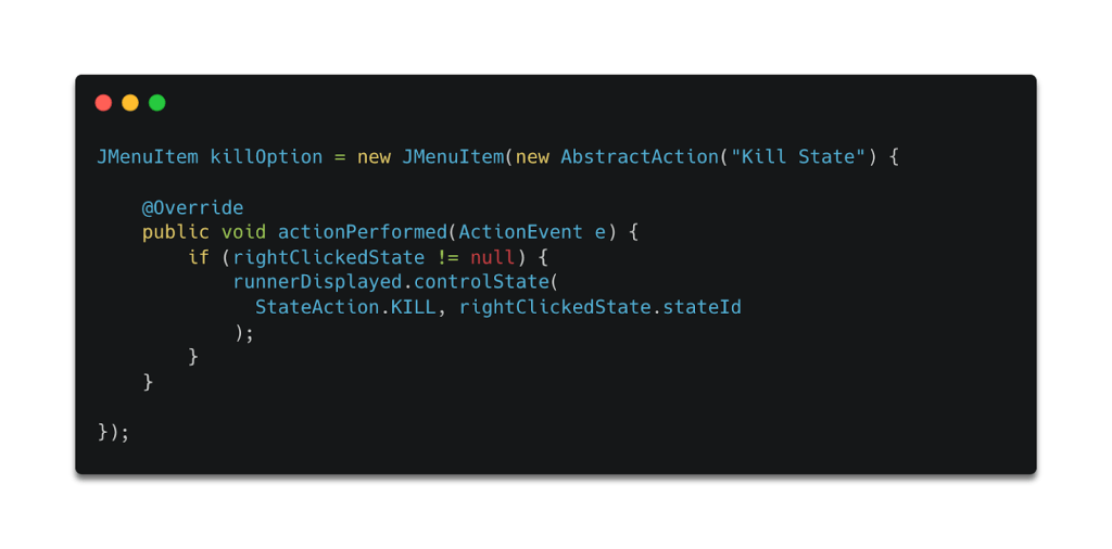 The only thing left to do is to make the appropriate UI changes! For this feature, we can simply open a context menu by right-clicking on a state in the state list and then populate the state with the actions that call the controlState method!