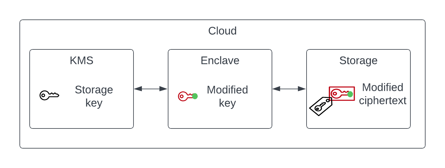 Figure 4: By modifying the ciphertext stored in external storage, an attack can cause the secure enclave to sign messages with a modified key without having to target the enclave itself.