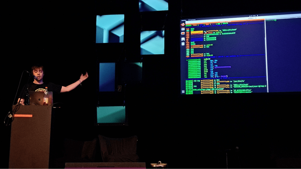 At the first session, Dominik presented Pwndbg, a plugin for GDB that enhances the debugging of low-level code by displaying useful context on each program stop. This context includes the state of the debugged program (its registers, executable code, and stack memory) and dereferenced pointers, which help the user understand the program’s behavior. The presentation showed some of Pwndbg’s features and commands, such as listing memory mappings (vmmap), displaying process information (procinfo), searching memory (search), finding pointers to specific memory mappings (p2p), identifying stack canary values (canary), and controlling the process execution (nextsyscall, stepuntilasm etc.). The presentation concluded with a release of Pwndbg cheatsheets and details on upcoming features, such as tracking GOT function executions and glibc heap use-after-free analysis. These features have been developed as part of Trail of Bits’s winternship program, now in its thirteenth year of welcoming interns who spend time working and doing research on industry’s most challenging problems.