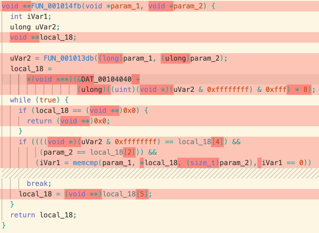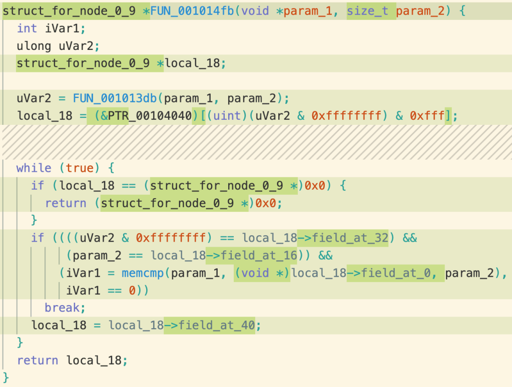 Figure 6: Ghidra decompiler output for the lookup function with type inference.