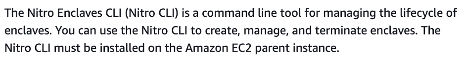 Figure 6: The AWS documentation states that nitro-cli must be run on an EC2 instance.