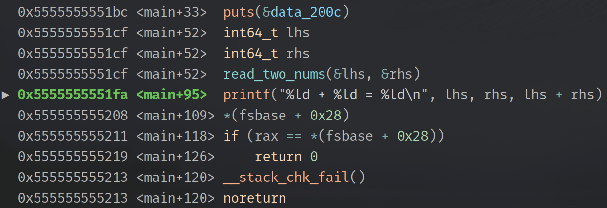 Figure 2: Decompilation pulled from Binary Ninja and displayed in Pwndbg